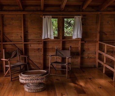 Estructuras de bambú, piedra o madera.